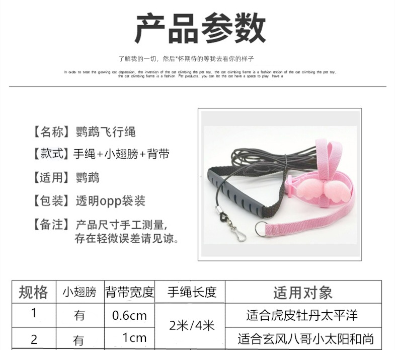 Ultra-Light Bird Outing Strap Flight Rope Tiger Skin Peony Hand Holding Rope Xuanfeng Parrot Flying Rope Walking Bird Handy Gadget