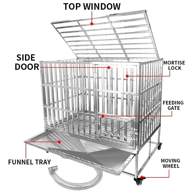 Type 110/125 Stainless Steel Dog Cage Large Dog Flush Cage Medium Size With Funnel Tray Golden Retriever/Labrador/Alaskan Cage