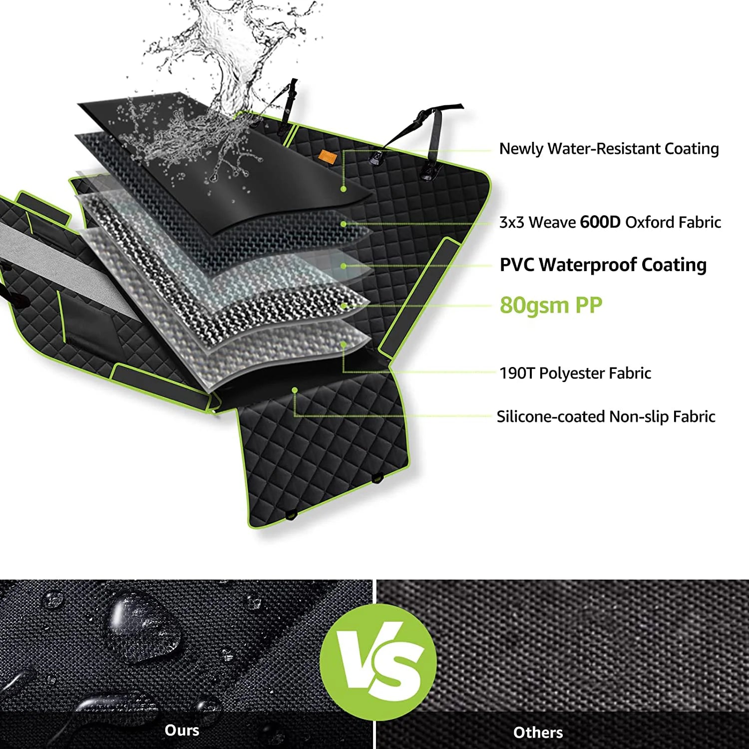Upgraded 6-in-1 Dog Car Seat Cover for Back Seat, 100% Waterproof Dog Car Hammock, Nonslip Dog Seat Cover for Cars Trucks and SU