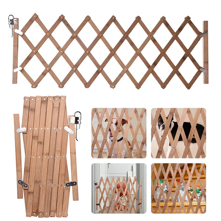 【Pet door fence】The Retractable Wooden Fence allows pets to stay away from dangerous areas while providing a safe fence for play and rest.