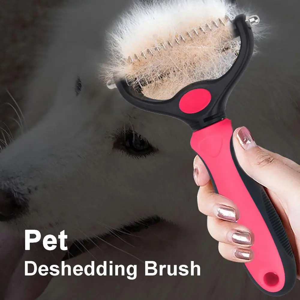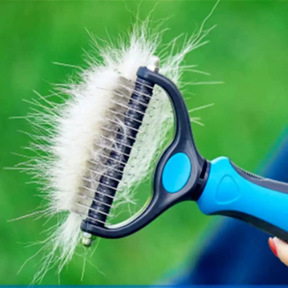 Double-Sided Deshedding Tool Removes Knots and Tangled Hair Pet Grooming Rake and Brushes for Small Medium Large Dogs