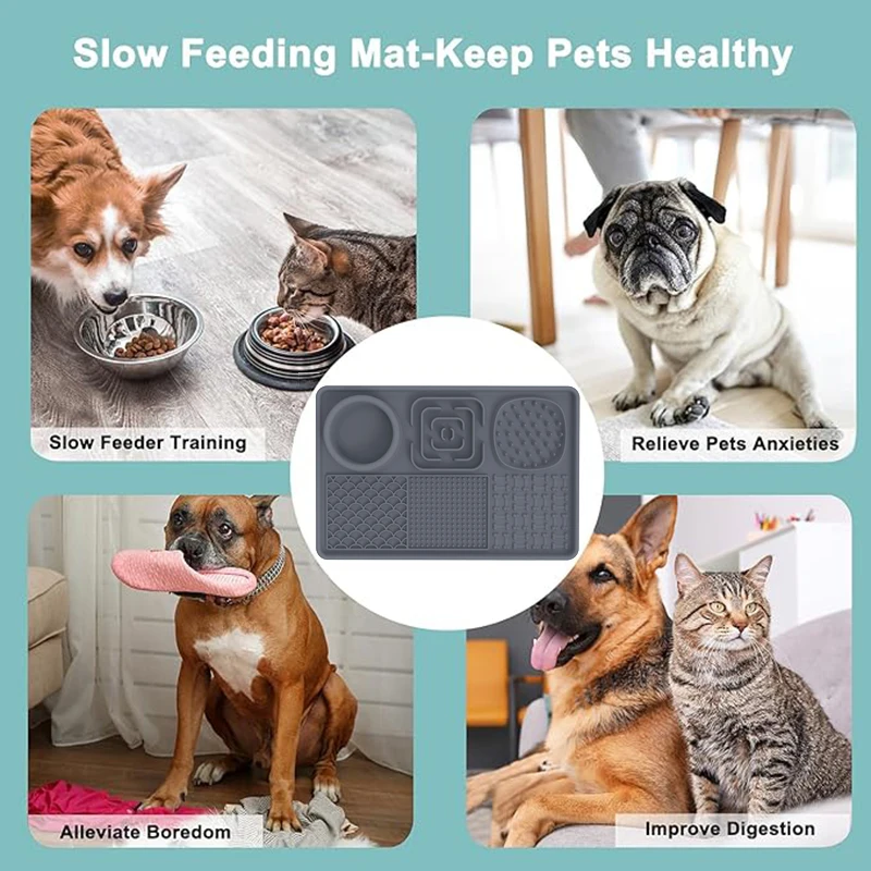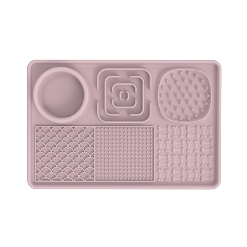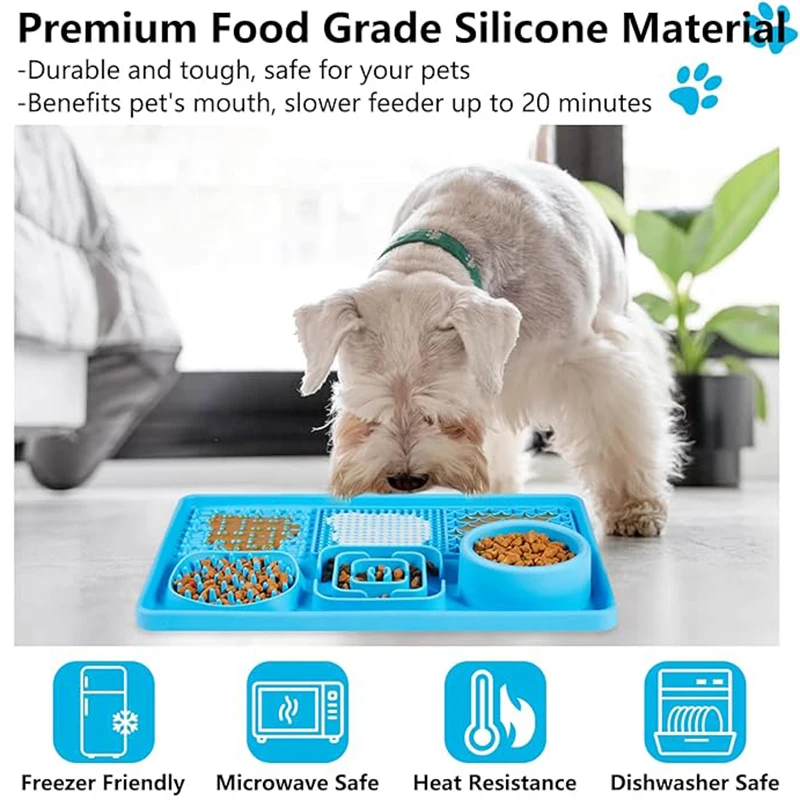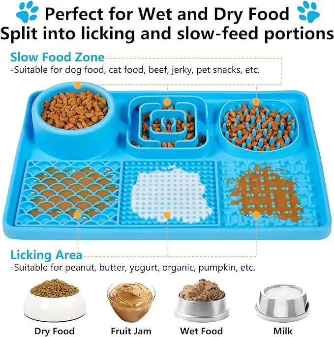 6 Partitions Pet Licking Mat Silicone Dog Slow Feeding Bowl for Dry and Wet Foods Strong Suction Cups Cat Placemat Puppy Feeder