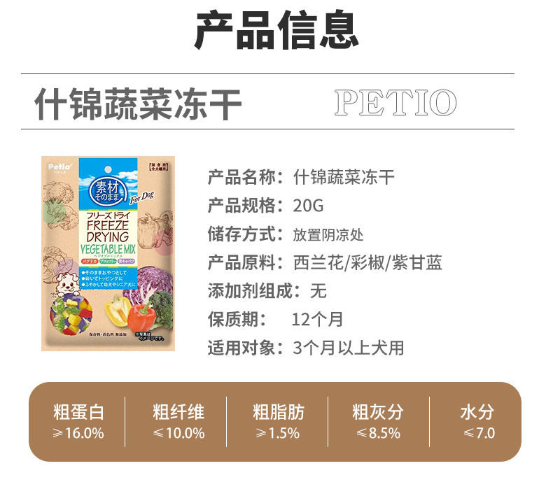 Petio Pidiao Dog Freeze-Dried Snacks Vegetables Adult Dogs Puppy Complementary Food Bibimbap Pet Fruit and Vegetable Dog Food Companion